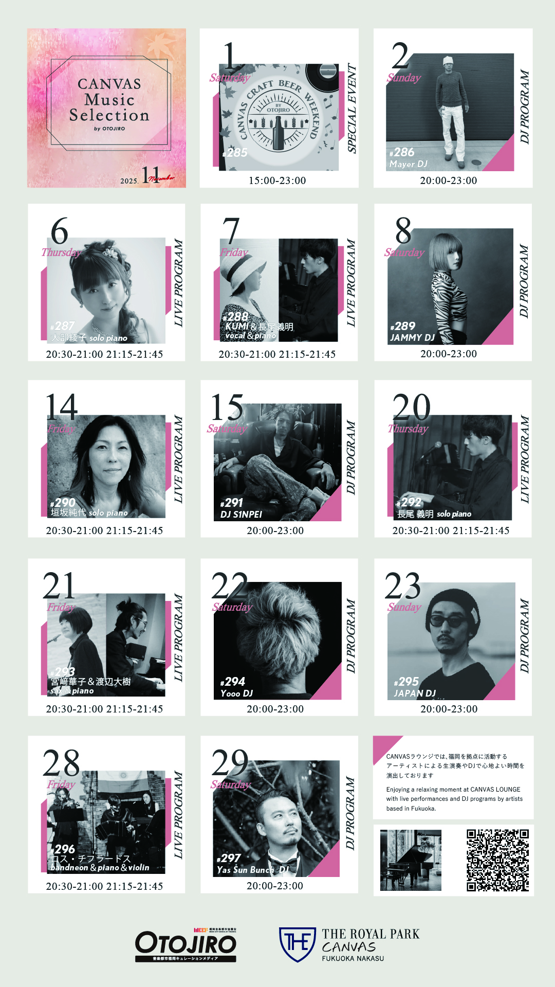 2025年11月「CANVAS Music Selection by OTOJIRO」スケジュール
