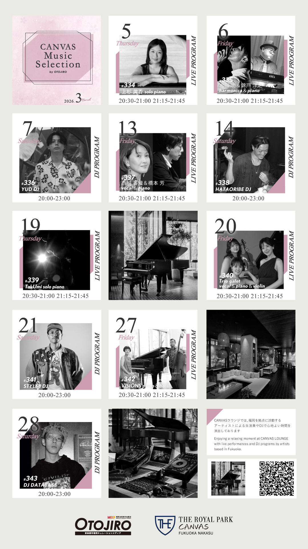 2026年3月「CANVAS Music Selection by OTOJIRO」スケジュール