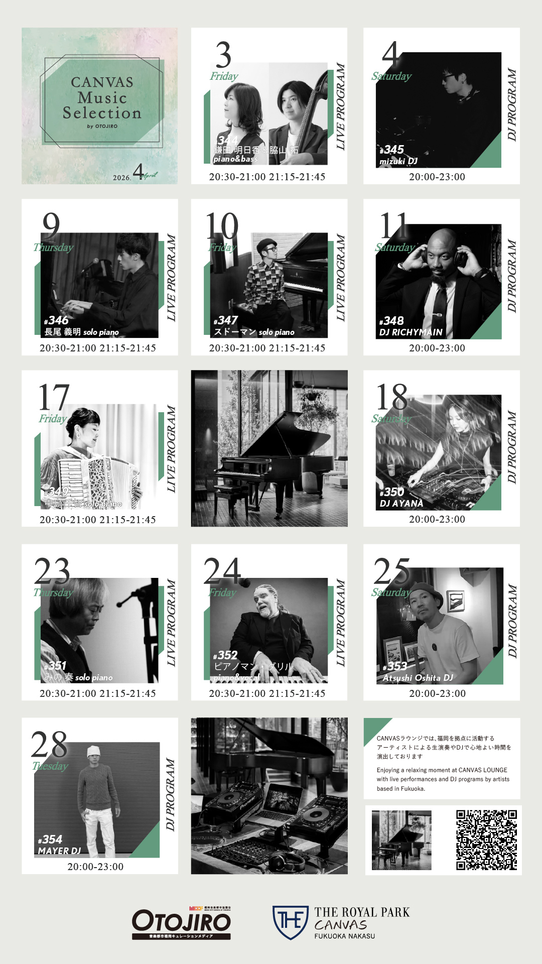 2026年4月「CANVAS Music Selection by OTOJIRO」スケジュール