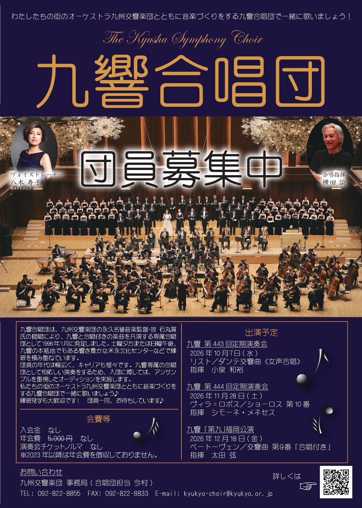 私たちの街のオーケストラ九州交響楽団とともに音楽づくりをする九響合唱団で一緒に歌いましょう!