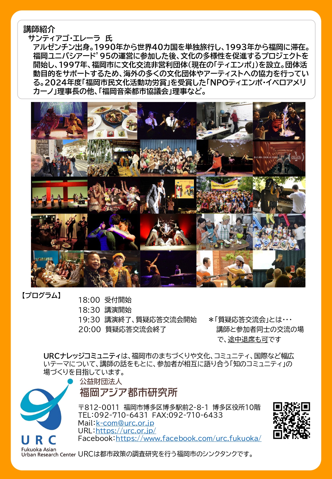 福岡を拠点として語学やダンス講座、音楽イベント、食文化交流事業などコミュニケーションの場を創出してきたサンティアゴ氏の想いに耳を傾けてみませんか?