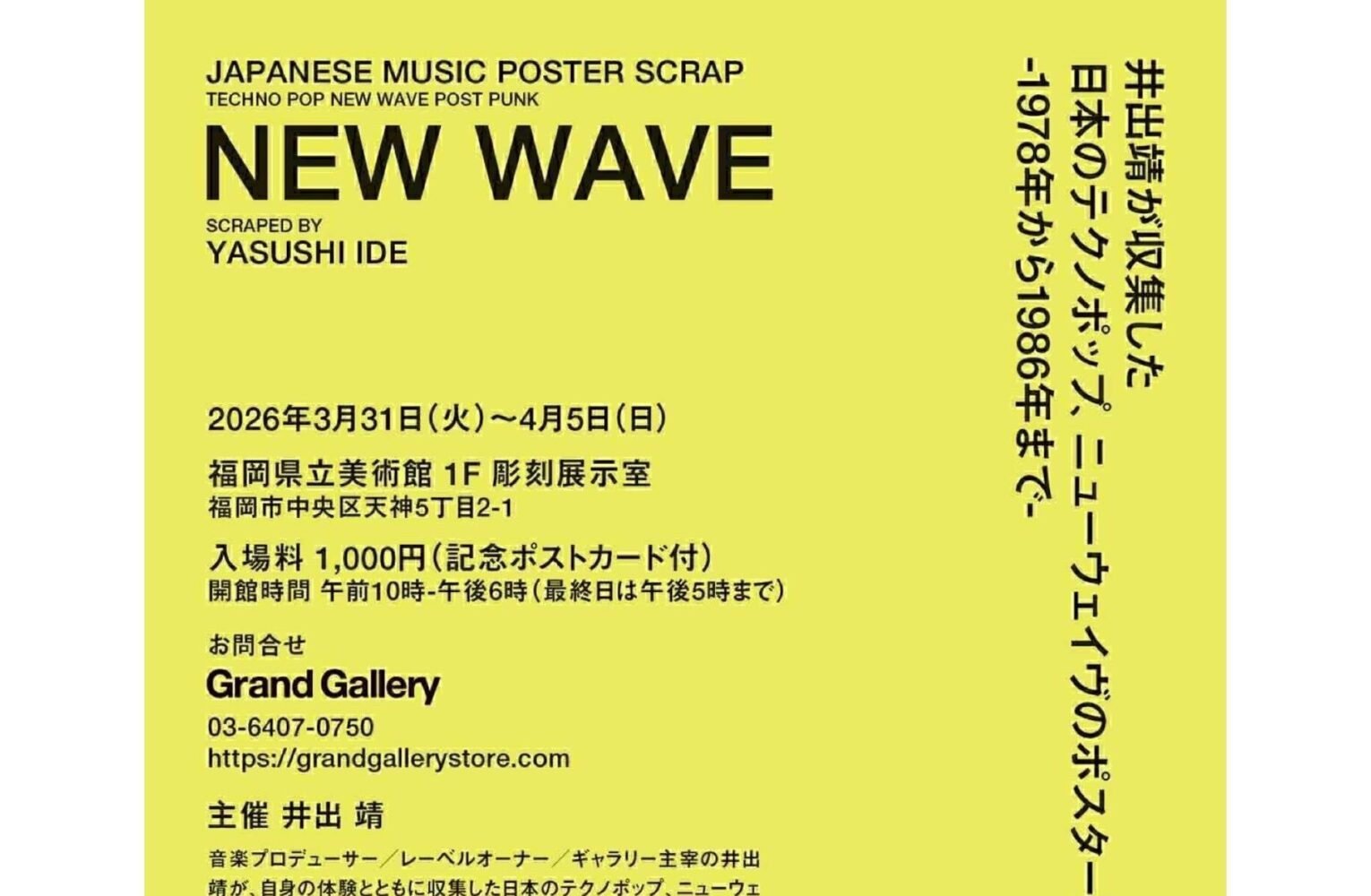 2026/3/31(火)~4/5(日) 井出靖が収集した日本のテクノポップ、ニューウェイヴ、ロックのポスター、チラシ展